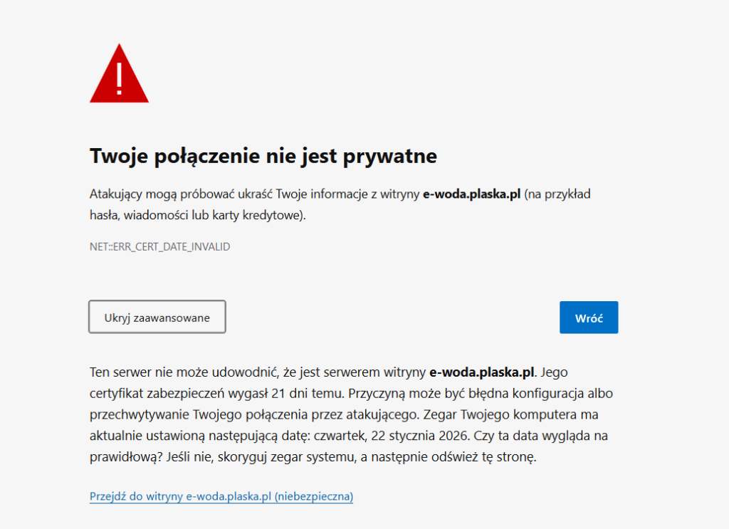 I jeszcze jedno pytanie. Jak wydacie już te prawie 50 tyś zł na cyberbezpieczeństwo to nie będę widział czegoś takiego po wybraniu E-WODA w menu głównym na stronie?