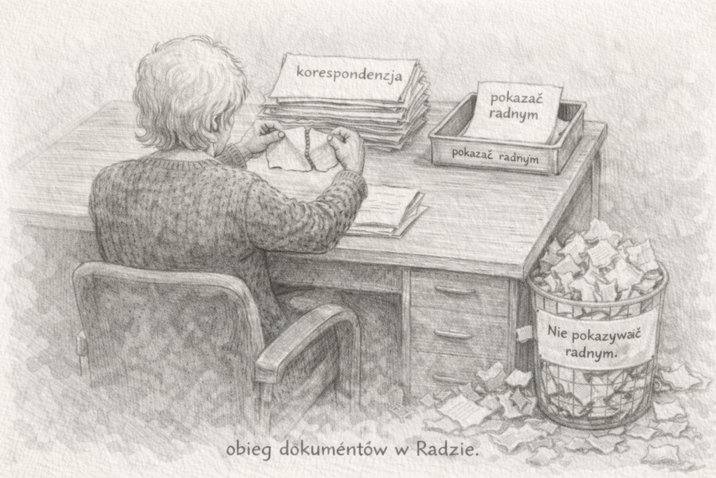 Ale po kolei. Dziś zatrzymajmy się przy obiegu dokumentów w Radzie Gminy. A właściwie – przy ich selektywnym „obiegu” i systemowym ukrywaniu informacji przed radnymi.